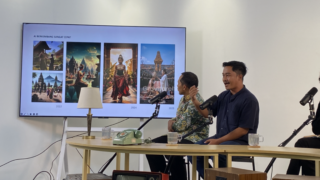 Selain pendekatan teknis, perspektif kontekstual disampaikan oleh Gustav Anandhita, Founder AI Nusantara. Ia menyoroti minimnya dokumentasi sejarah dan kebudayaan lokal. Dari situ, ia melihat AI sebagai medium pengarsipan.