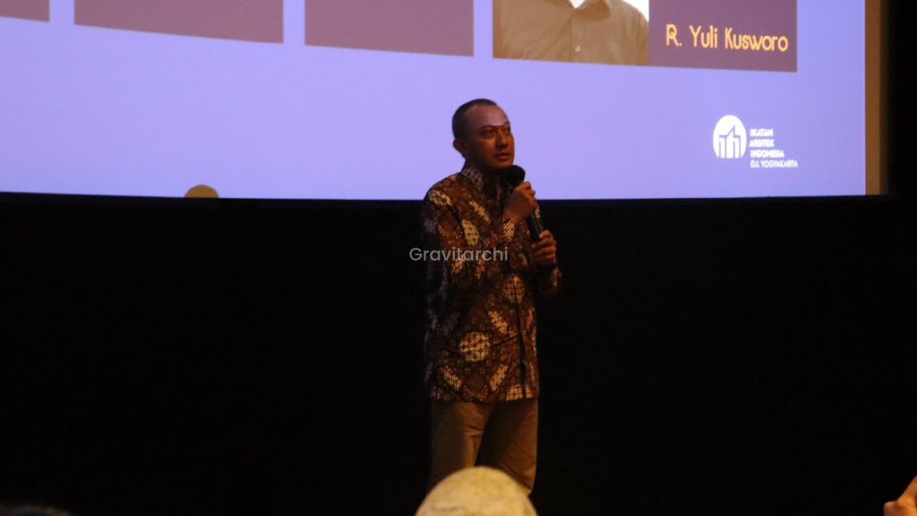 Sambutan turut disampaikan oleh perwakilan Ikatan Arsitek Indonesia Regional Daerah Istimewa Yogyakarta (IAI DIY), yang diwakili oleh Ketua, Erlangga Winoto.