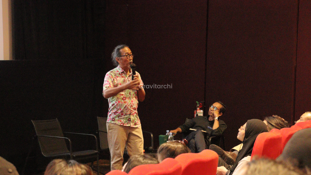 Memasuki sesi tanya jawab, percakapan berkembang lebih cair sekaligus kritis. Pertanyaan tentang masa depan profesi, strategi bertahan bagi studio kecil, hingga peluang kolaborasi lintas disiplin mengemuka silih berganti. Diskusi pun bergeser, dari pengalaman personal menuju persoalan yang lebih struktural—tentang keberlanjutan praktik, perubahan model kerja, dan cara arsitek menempatkan diri di tengah dinamika sosial serta spasial yang terus bergeser.